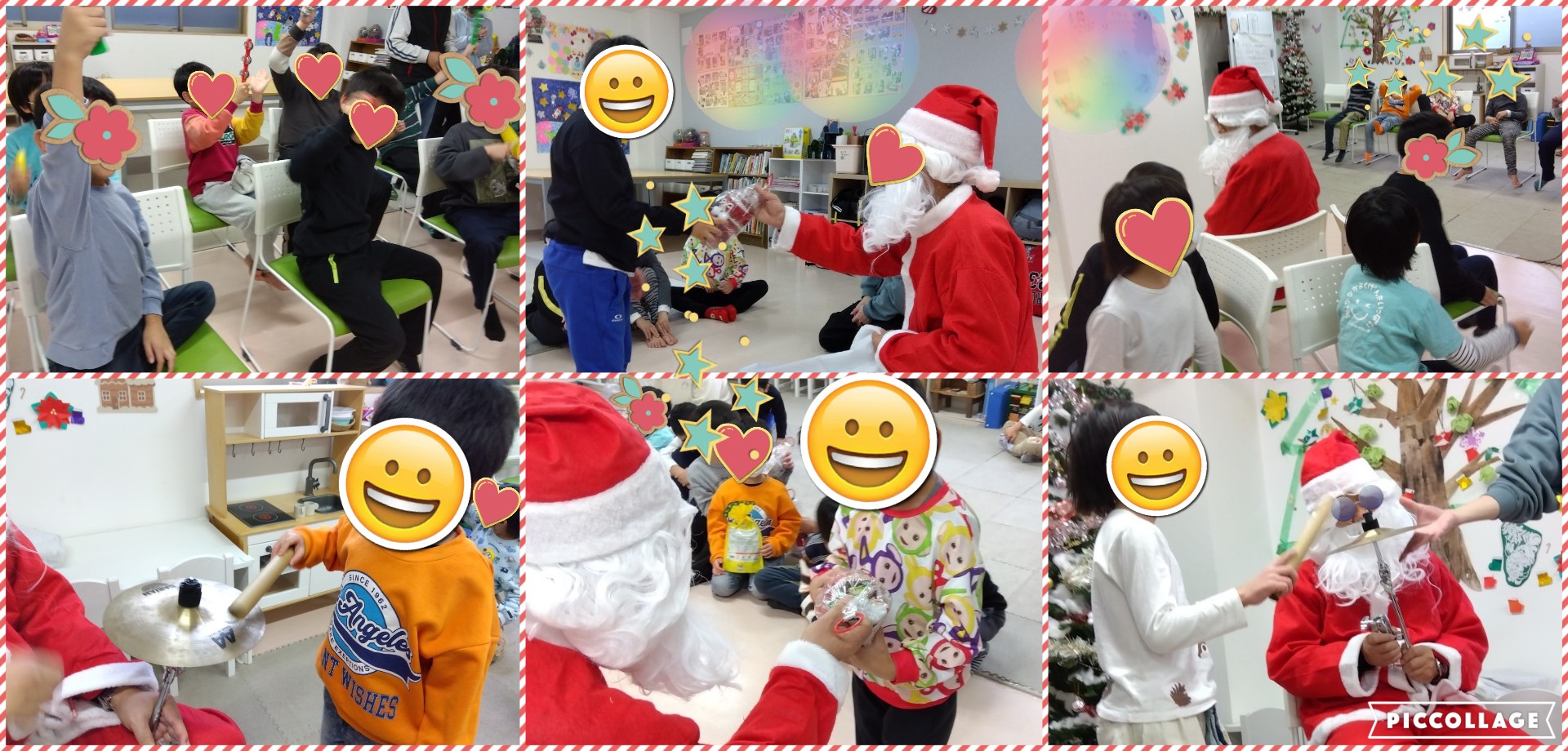 その後は、サンタさんと一緒に楽器を使って演奏しながらクリスマスソングを歌いました♪