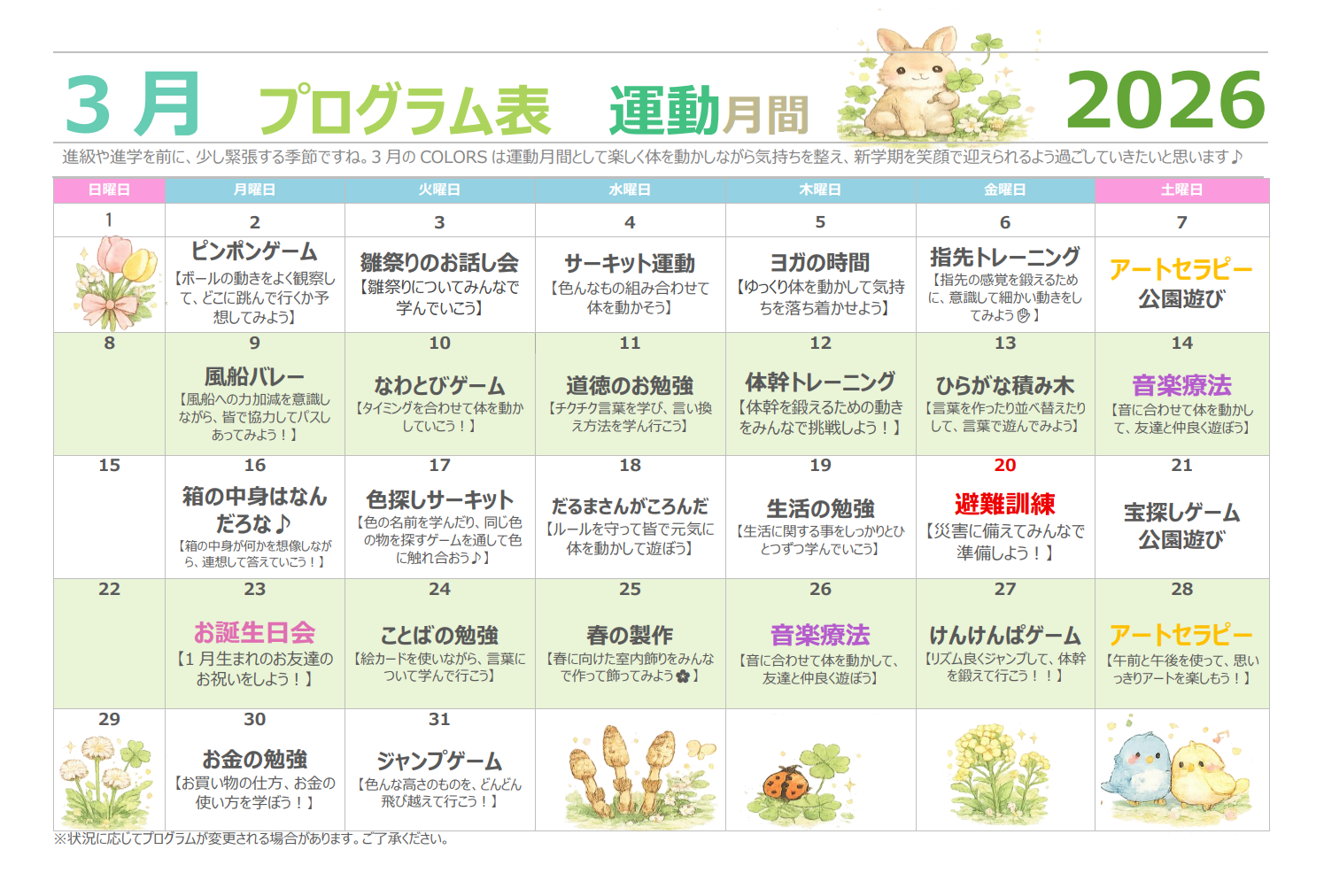 COLORSの【3月プログラム表】をお知らせします🌼