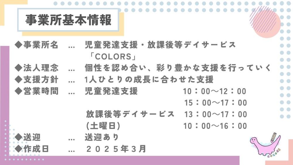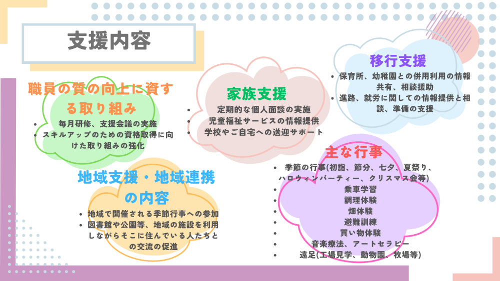 ※土曜・祝日・長期休暇は10時から来所。昼食、集団活動が加わります。